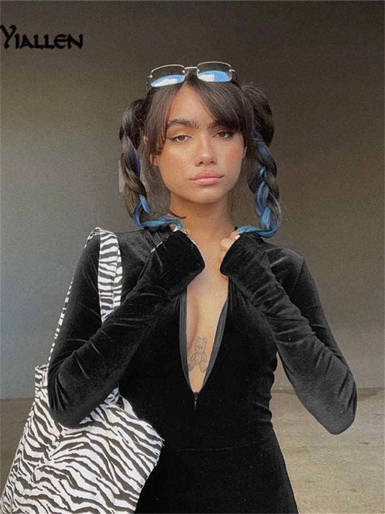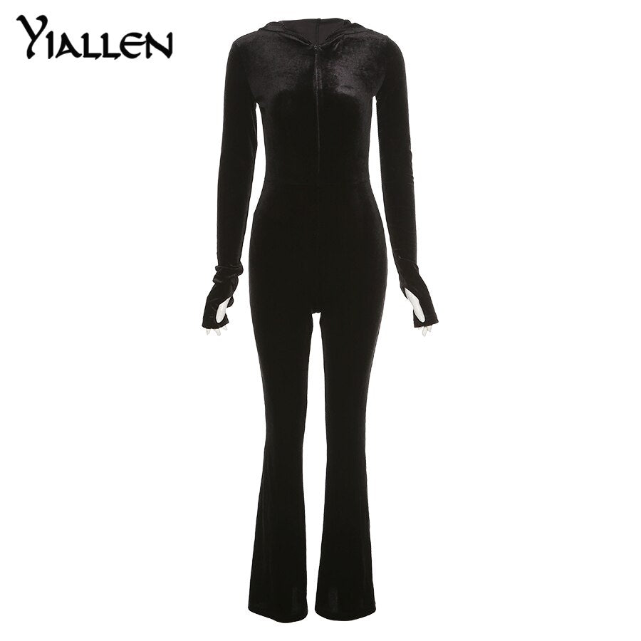 Yiallen Autumn Solid Fashion Slim Jumpsuits Women Hooded Long Sleeve Zipper Street Casual Lady Black Long Phant Rompers New Hot