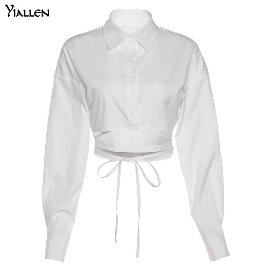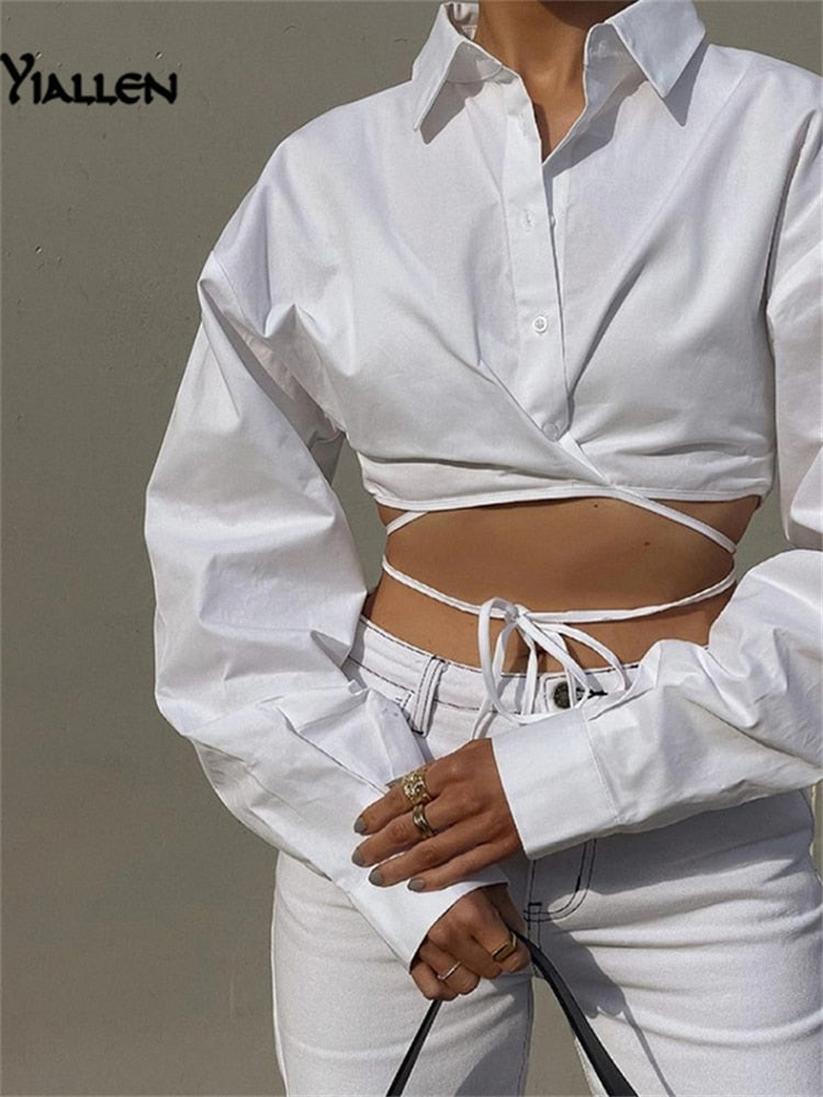 Yiallen Autumn Y2K Bandage Shirt Women 2021 New Long Sleeve Tops Slim Fashion Design Clothing Solid Casual Wild Streetwear Hot