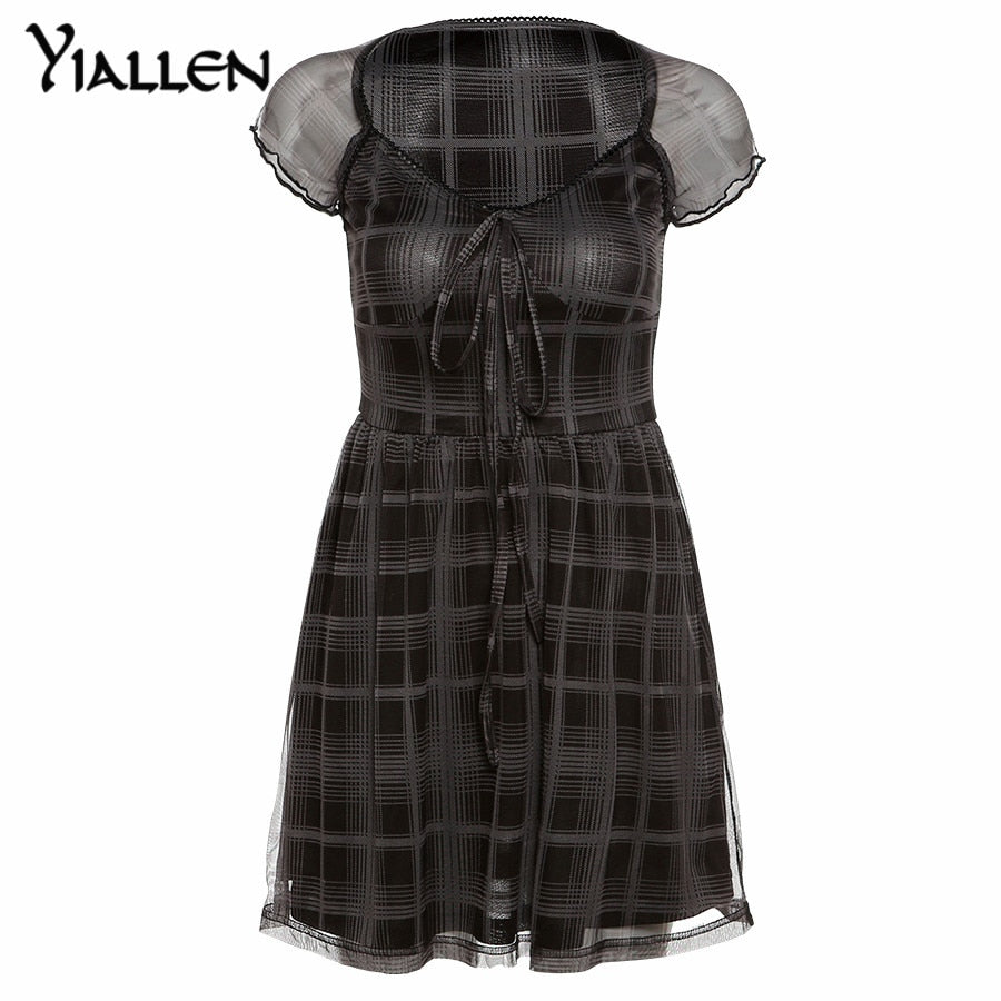 Yiallen Gothic Plaid Black Lace Up Women Dress Harajuku Short Sleeve A Line Party Sexy Mini Dress Summer Fashion Streetwear 2021