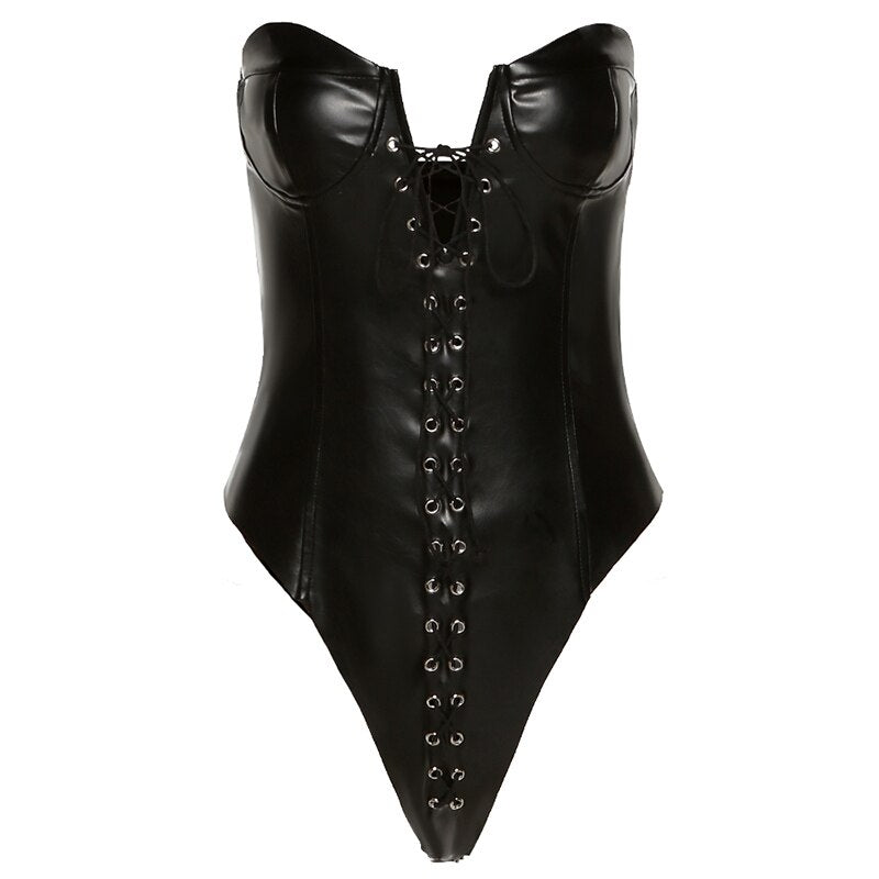 Yiallen sexy Black PU Leather Strapless Tube Top Backless Bodysuits Women Slim 2021 Autumn Fashion Casual Party Bodysuit Mujer