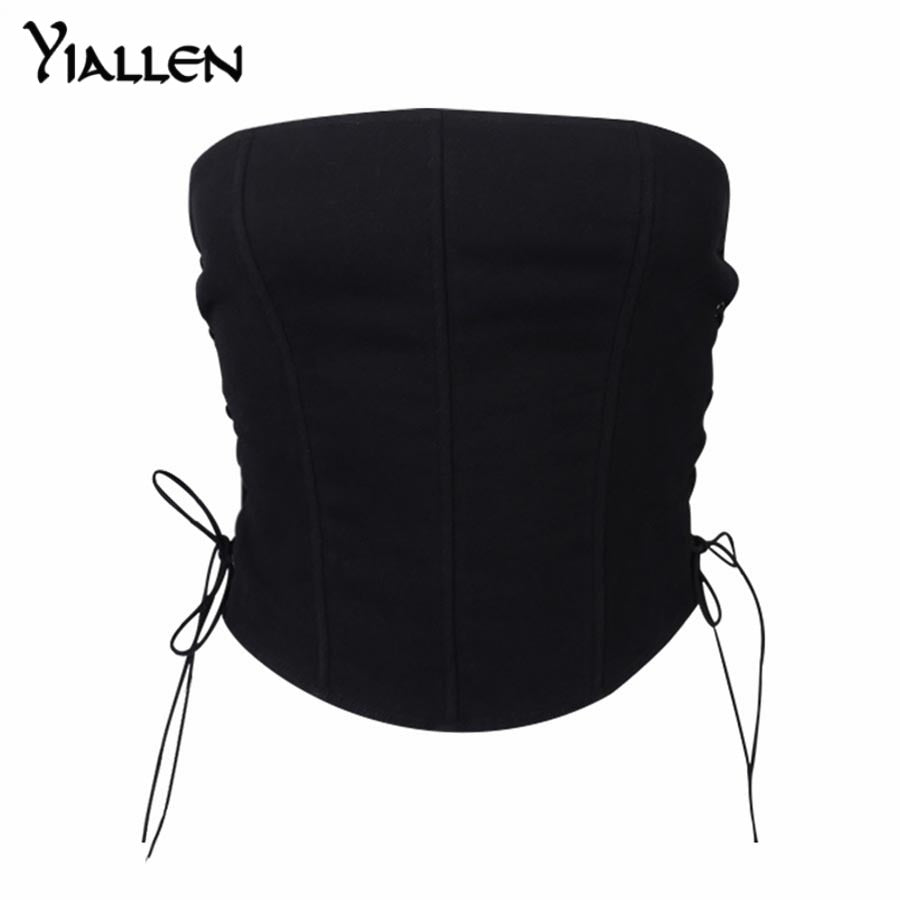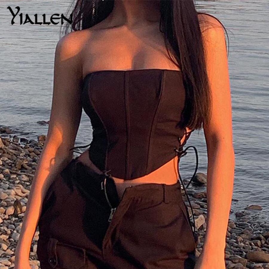 Yiallen Sexy Club Strapless Side Hollow Out Lace Up Bodycon Crop Top Women Fashion Sleeveless Skinny Pure Streetwear Camisole