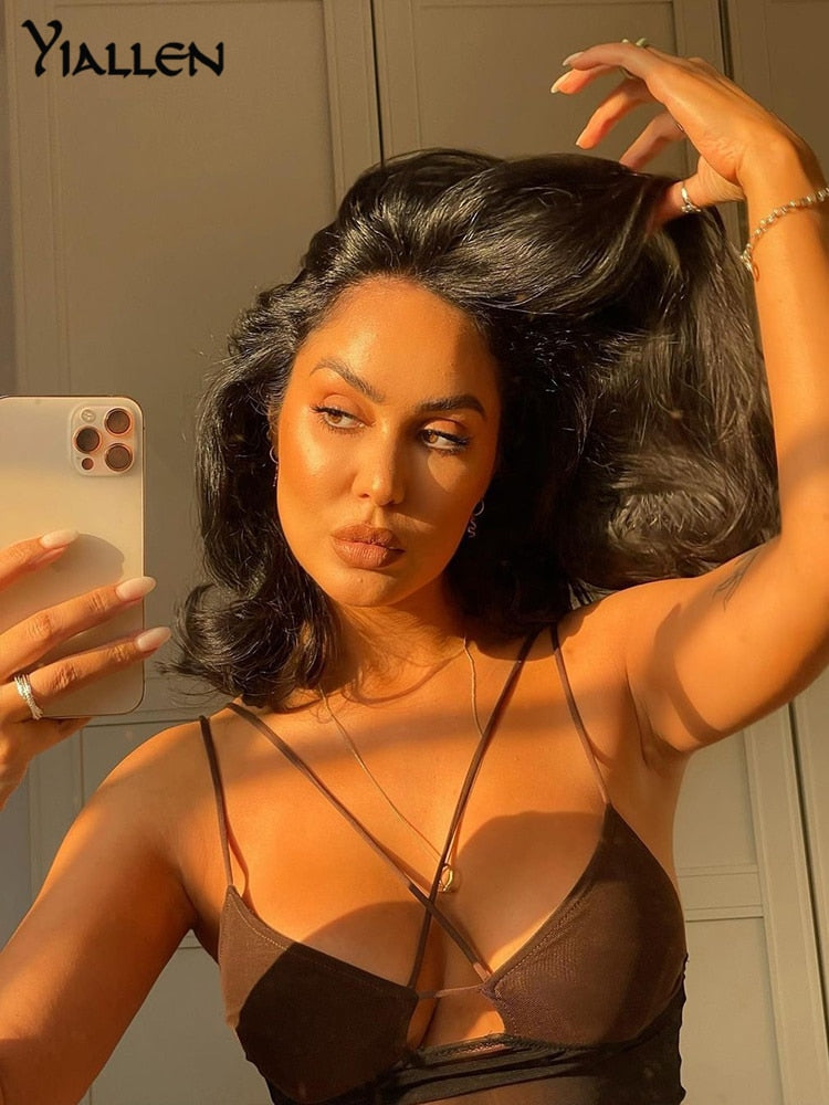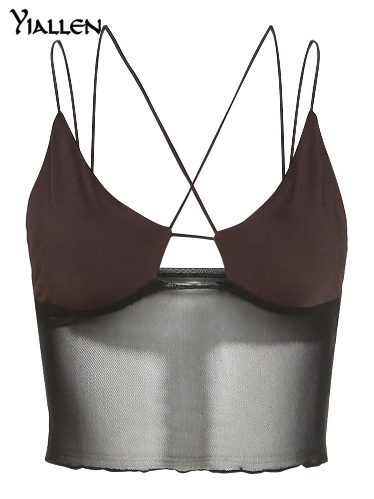 Yiallen Summer Sexy Hollow Out Mesh Camisole Women 2021 New Casual Simple Wild Basic Female Crop Top Streetwear Activewear Hot