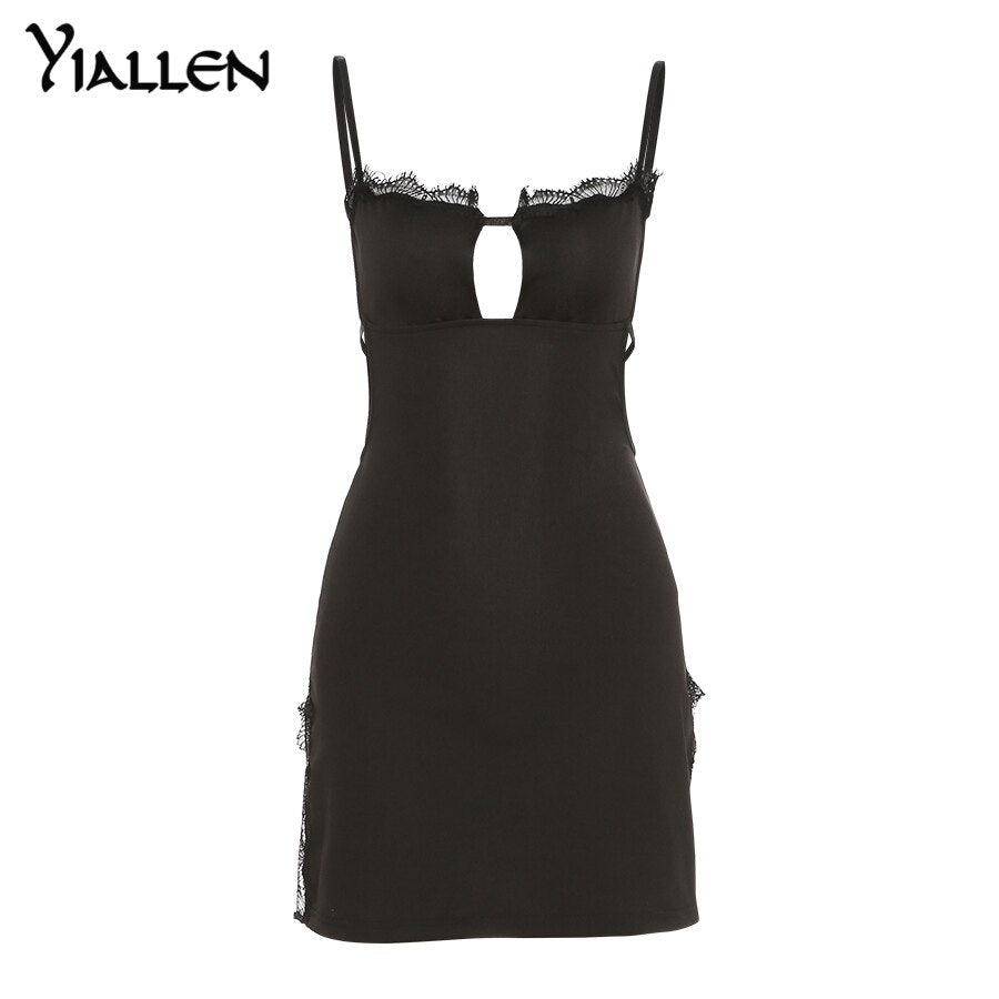 Yiallen Summer Women Black Dress New Nightwear Temptation Sexy Lace Light Luxury French Backless Dresses High Split Night Robe