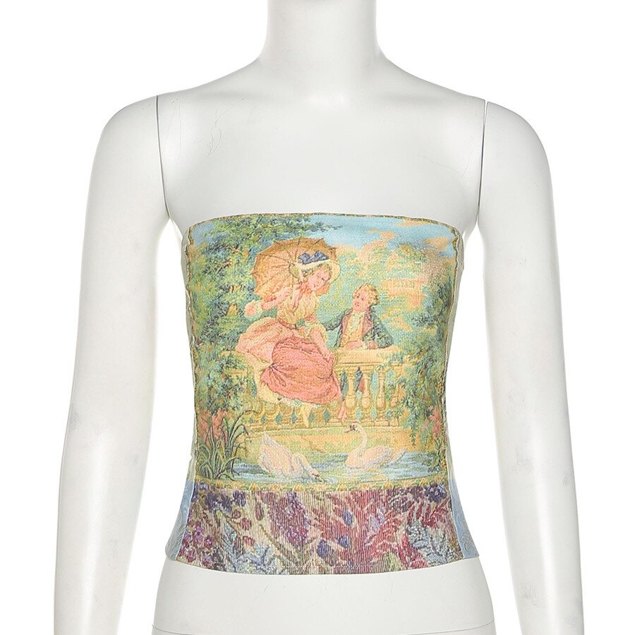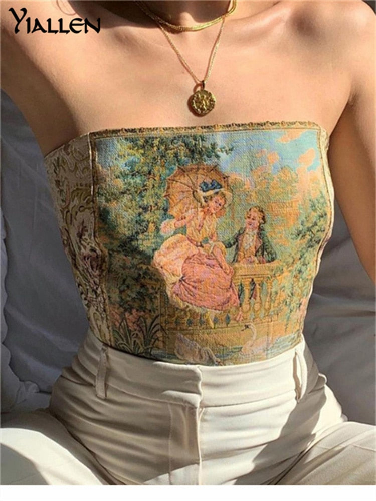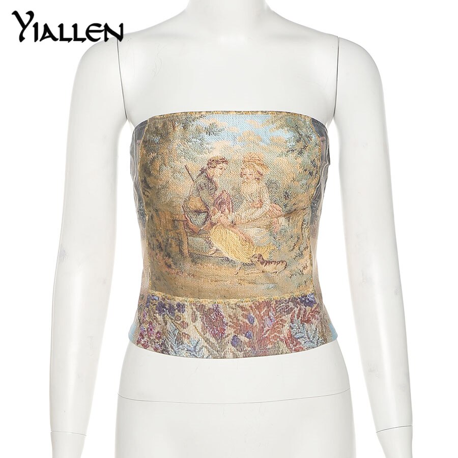 Yiallen Summer Women Sexy Off-Shoulder Tube Tops 2021New Strapless Backless Printing Tank Vests Tops Sexy Women Party Club Wear