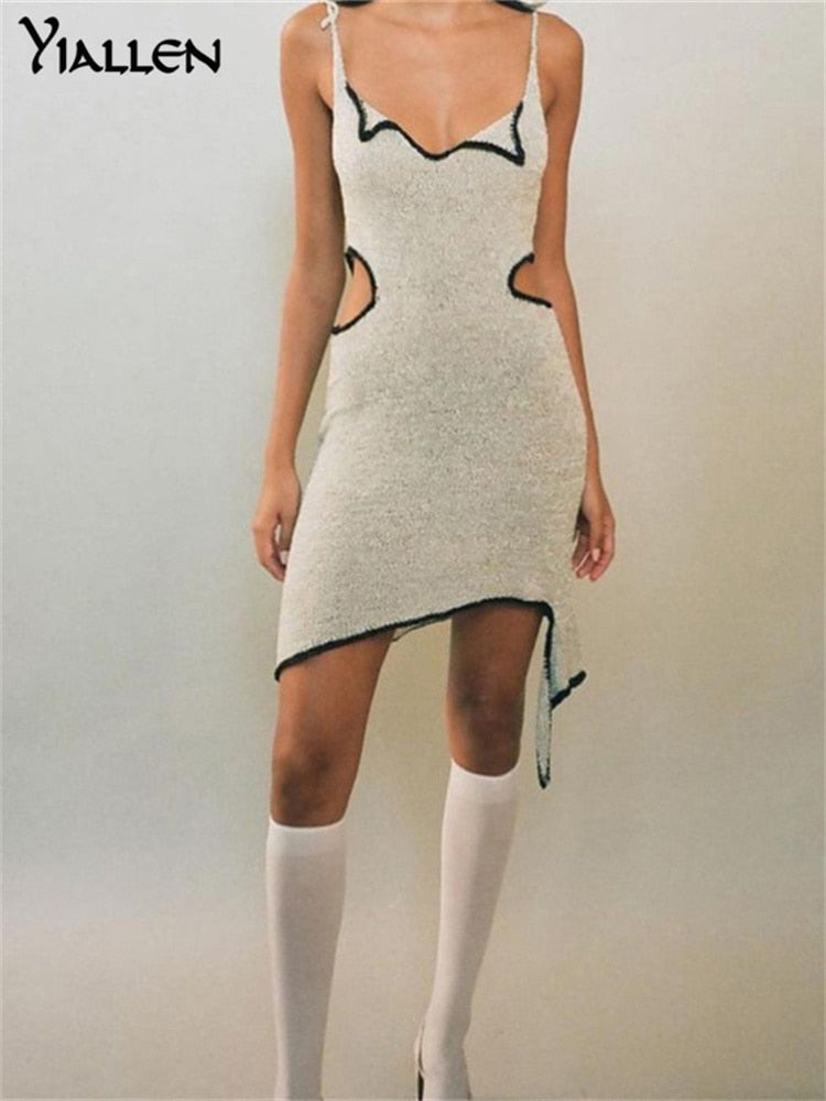 Yiallen Summer Y2K Patchwork Sexy Low Collar Cut Out Sling Mini Dresses 2021 New Women Sleeveless Skinny Club Clubwear Outfits