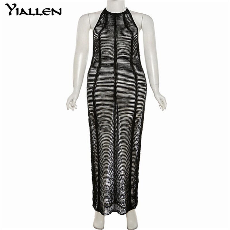Yiallen Women Summer Sexy Hollow Out See Through Sleeveless Long Dress Fashion New Casual Street Clubwear Female Dresses Hot